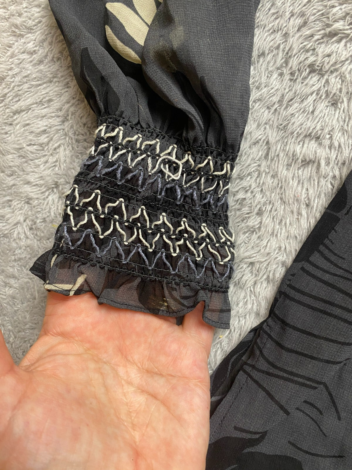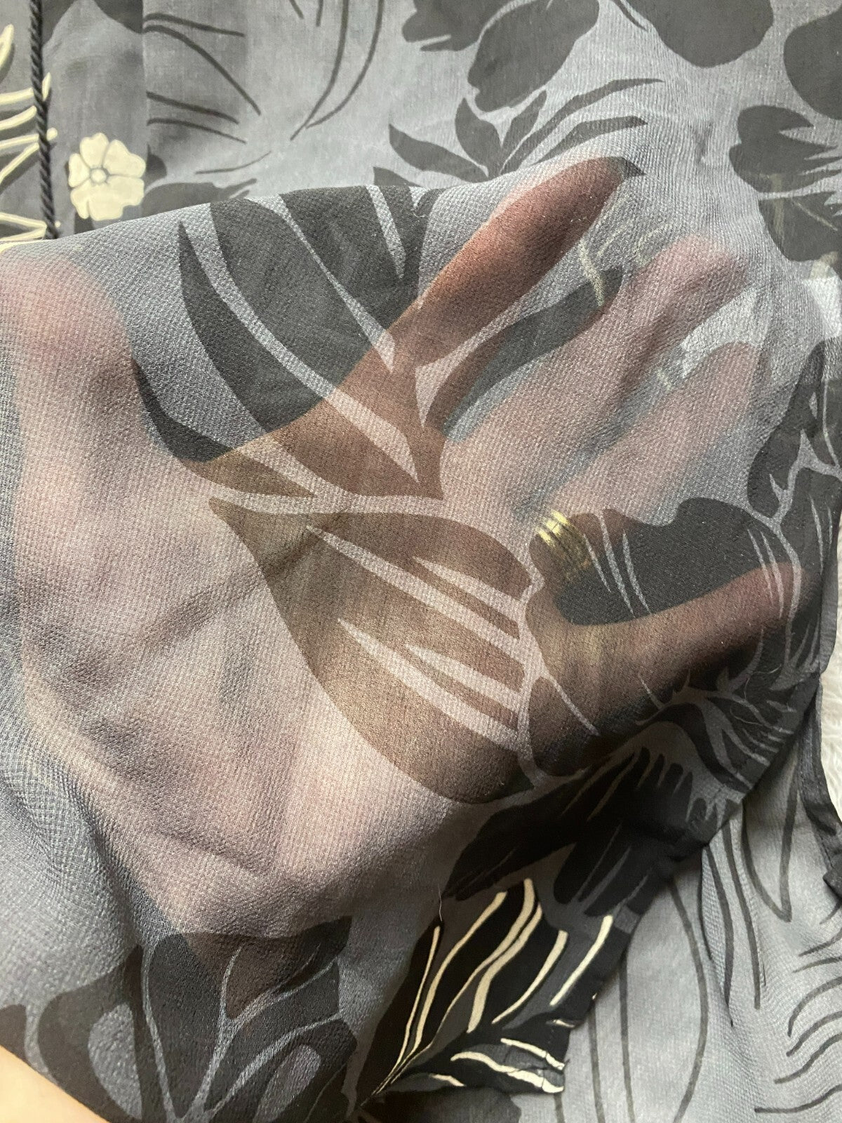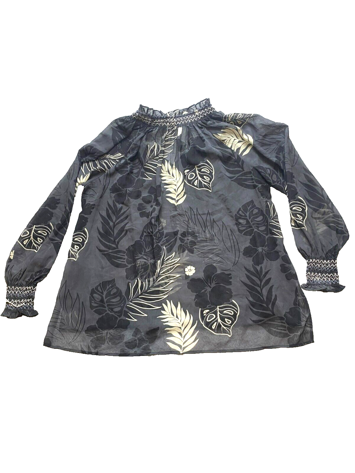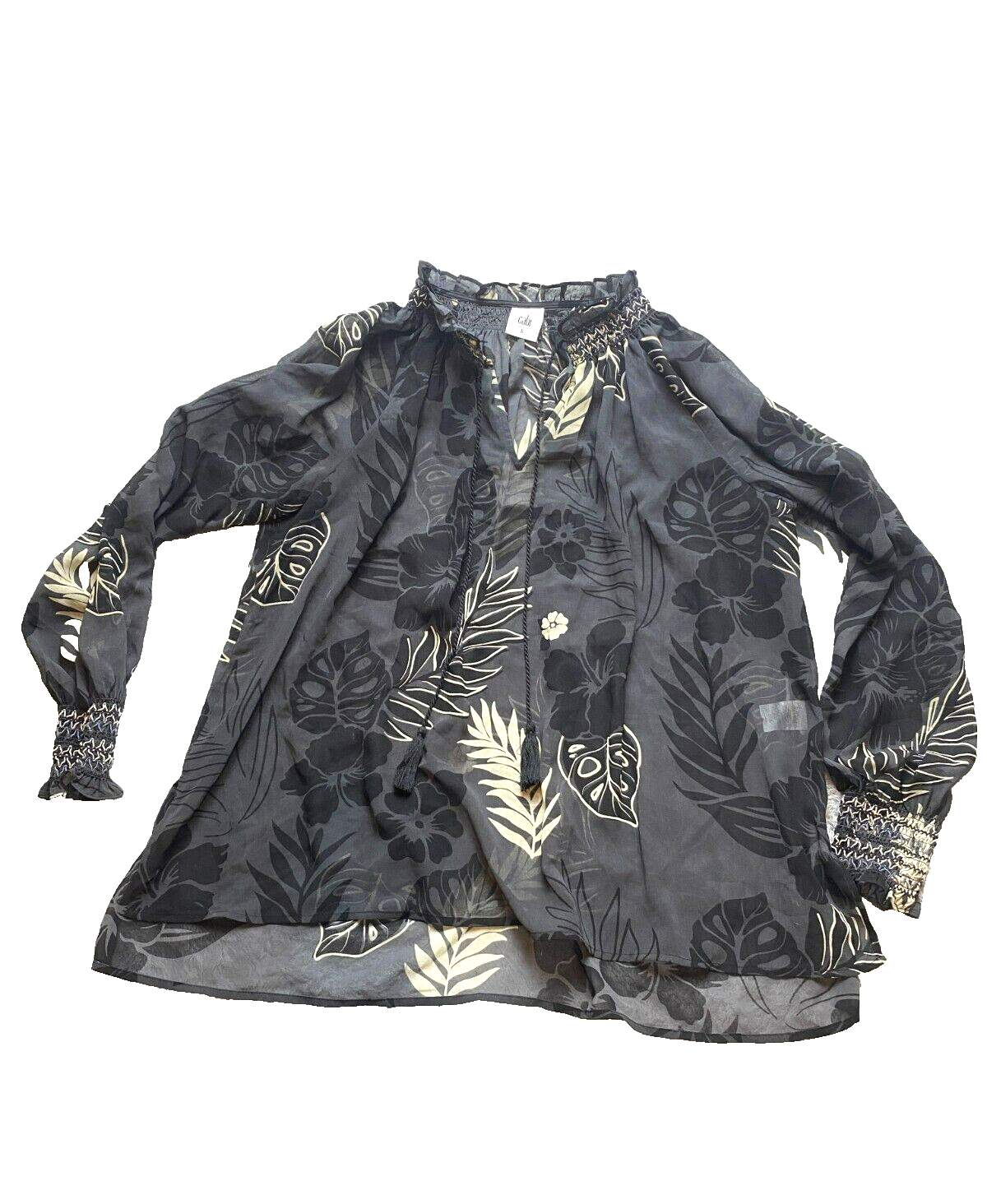 Cabi Shirt Womens Large Black Aloha Sheer Tropical Peasant Boho Blouse Oversized