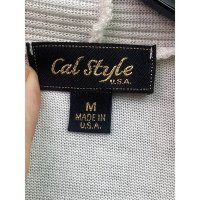 Cal Style Cardigan Womens Medium White Rayon Waterfall Embellished AOP Career