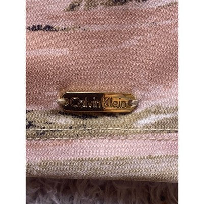 Brushstrokes of chic define this Calvin Klein top, a symphony of style and comfort. The abstract print, a blend of pink, black, and subtle olive tones, creates a visually captivating design. The flattering V-neckline adds a touch of elegance, while the long sleeves with unique split cuffs offer a modern twist. The lightweight fabric drapes beautifully, ensuring a comfortable fit and effortless movement. This top is perfect for a casual brunch with friends, a relaxed day at the office, or a stylish evening out.