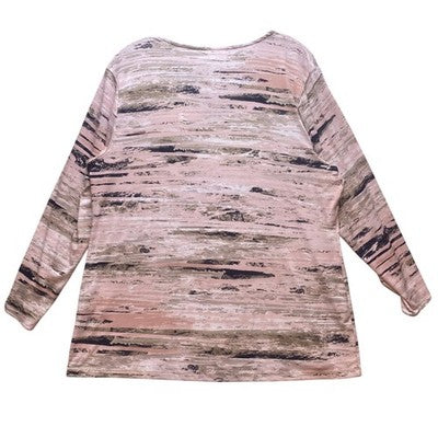 Keywords: Calvin Klein, V-Neck Top, Long Sleeve, Abstract Print, Pink Top, Black Top, XL Top, Women's Top, Casual Top, Designer Top, Polyester Top, Comfortable Top, Stylish Top, Split Cuff, Modern Top