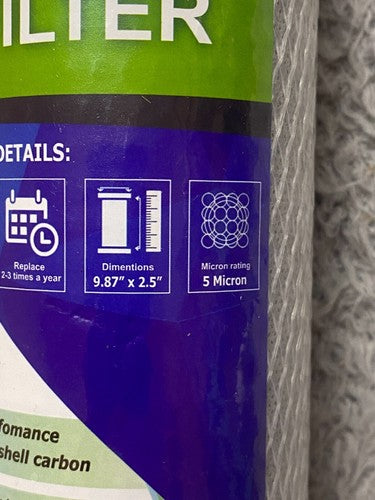 Carbon Block Water Filter 9.87" x 2.5" 5 Micron Whole House Cartridge