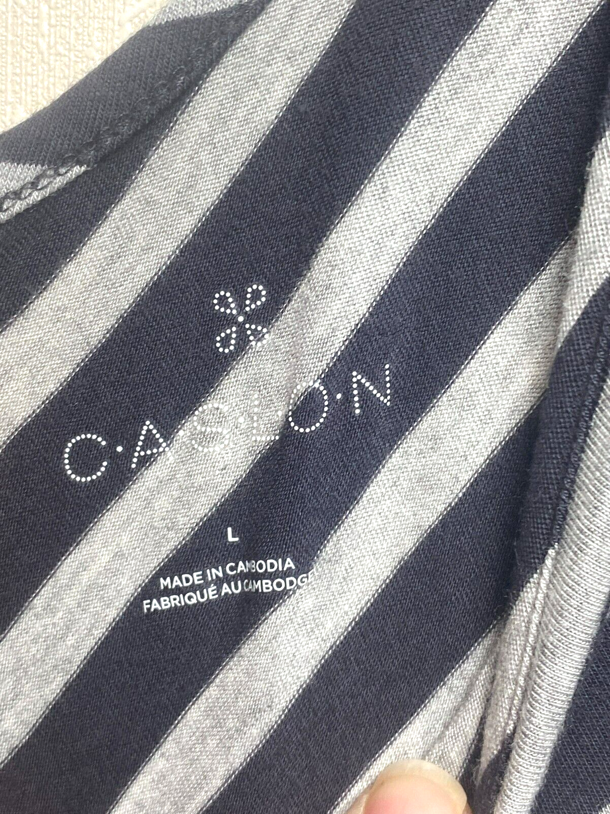 Caslon Dress Womens Large Navy Gray Sundress Lagenlook Maxi Rayon Spandex