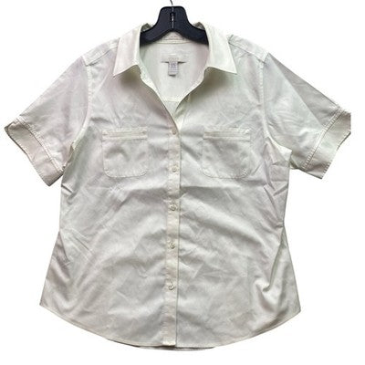 Keywords: Chicos, White Shirt, Button Down, Short Sleeve, Cotton Shirt, Career Wear, Work Top, Womens Top, Classic, Casual, Shirt, Blouse