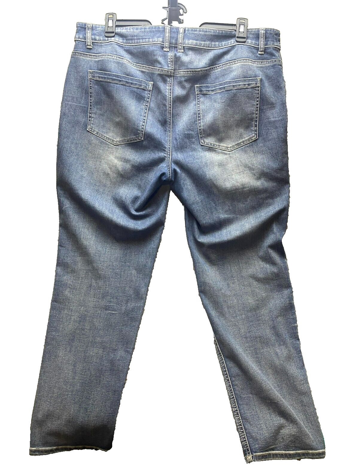 Chicos Jeans Womens 3 (42x30.5) Blue Denim Platinum Spandex Stretch Straight Leg