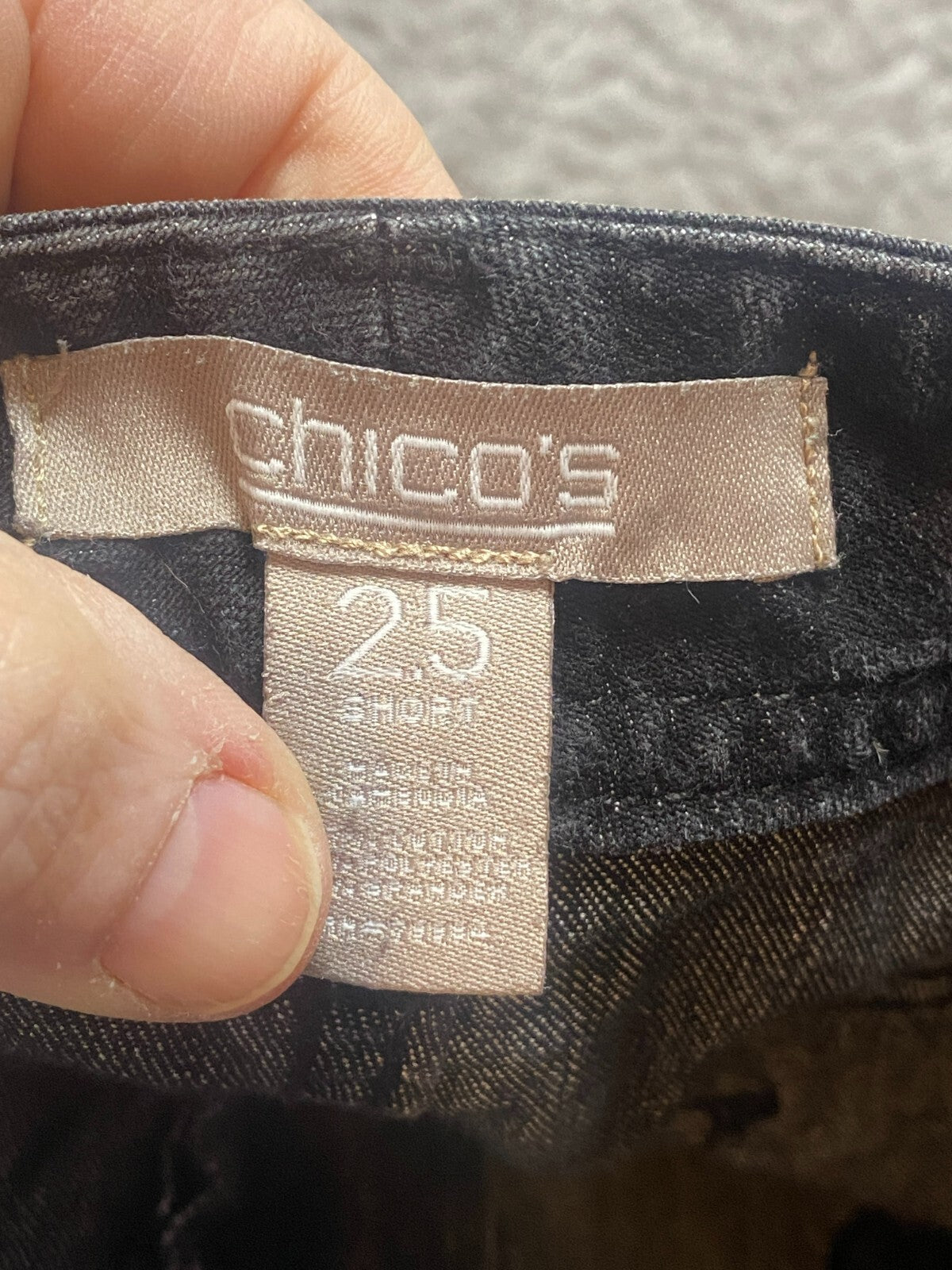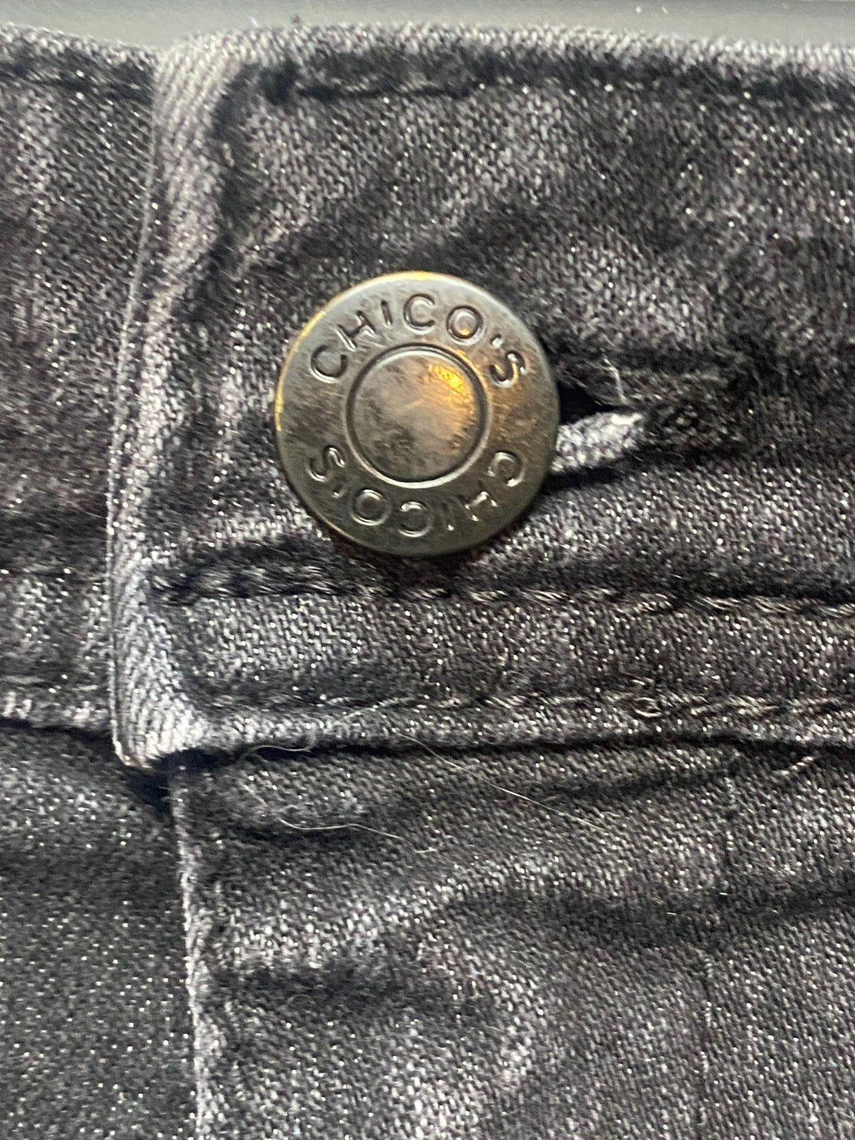 Chicos Jeans Womens 39x29 Black Denim Zip Fly Straight Leg 2.5 Short Platinum