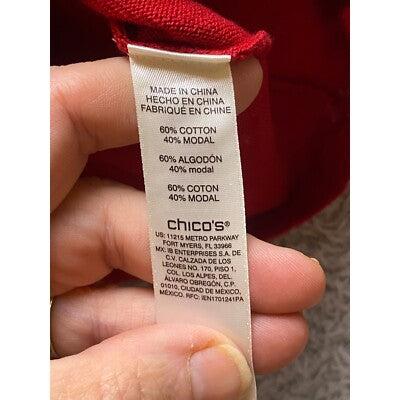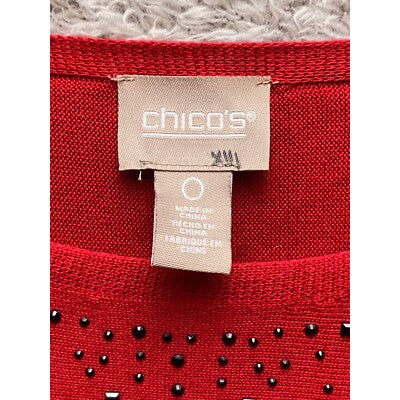 Keywords: Chico's sweater, red sweater, embellished sweater, jewel neck sweater, pullover sweater, long sleeve sweater, women's sweater, size small sweater, holiday sweater, casual sweater, knit sweater, sparkly sweater, red top, Chico's top