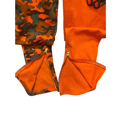 Keywords: colorblock joggers, teddy bear pants, camouflage joggers, zip ankle pants, orange joggers, camo pants, womens joggers, streetwear pants, casual pants, loungewear, athleisure, unique pants, statement pants, trendy joggers