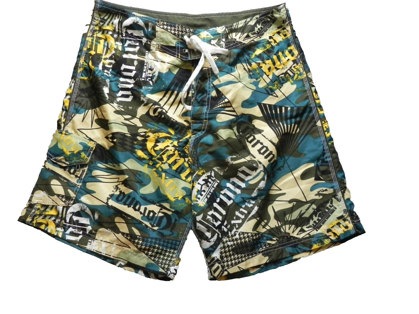 Corona Extra Shorts Adult 36 Board Trunks Swimwear Bottoms AOP Hawaiian Mens