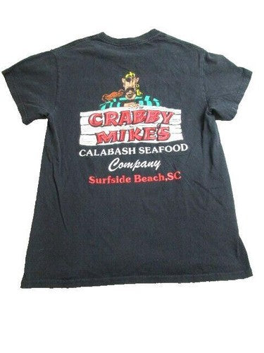 Crabby Mikes Shirt Womens Small Black Calabash Seafood Surfside Beach SC Ladies