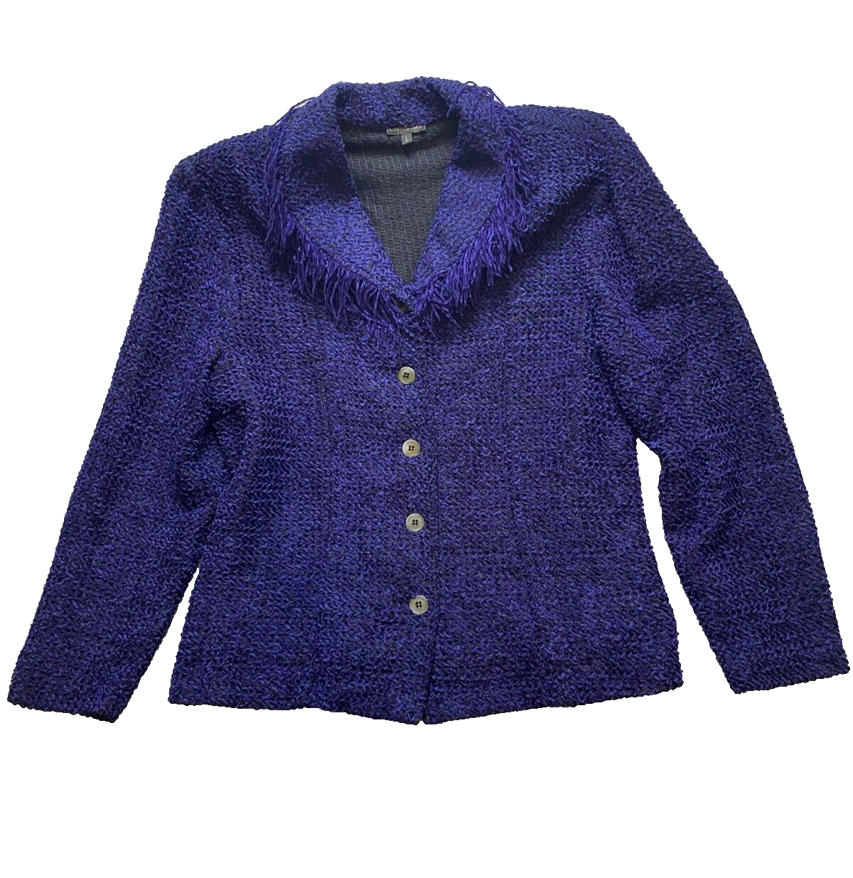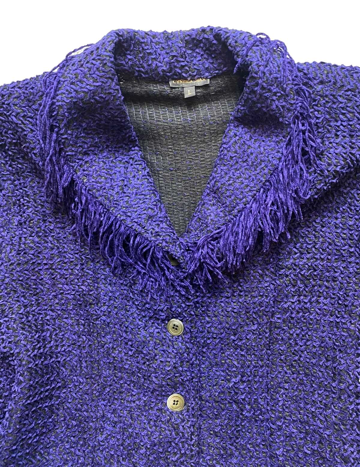 Cynthia Max Jacket Womens Large Purple Black Chenille Blazer Button Up Ladies