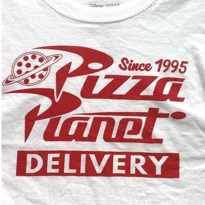 Nostalgia comes alive with this delightful Toy Story Pizza Planet crop top, a playful piece that brings cinematic fun to your wardrobe. The crisp white canvas is boldly emblazoned with the iconic Pizza Planet logo in vibrant red, evoking memories of childhood adventures. Red and white checkerboard detailing race down the long sleeves, infusing a sporty, retro vibe. This spirited top adds a touch of whimsy to casual outings, themed parties, or cozy movie nights.