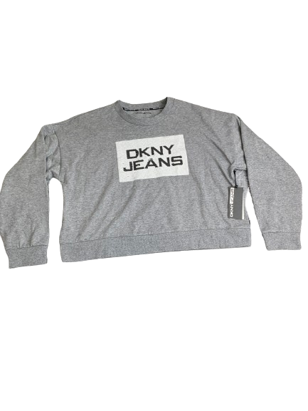 DKNY Jeans Sweatshirt Womens Extra Large Gray Oversized Cropped Pullover NWT