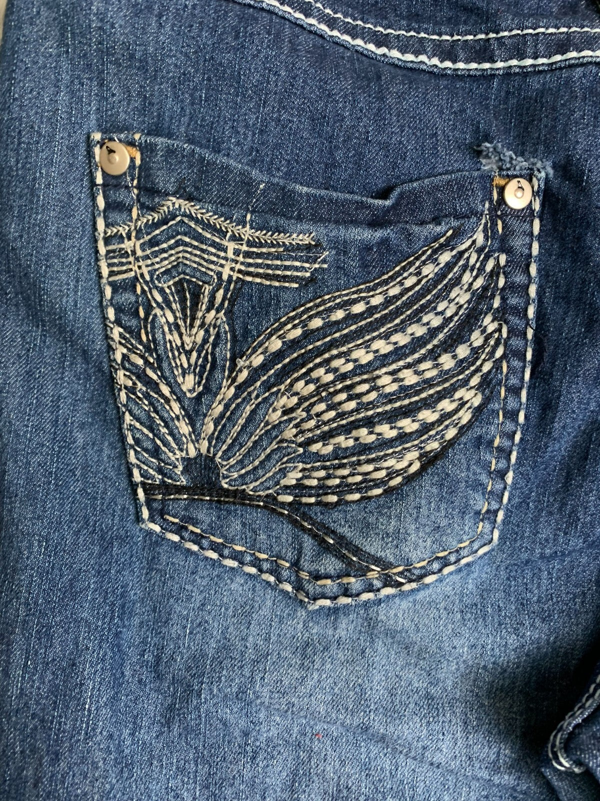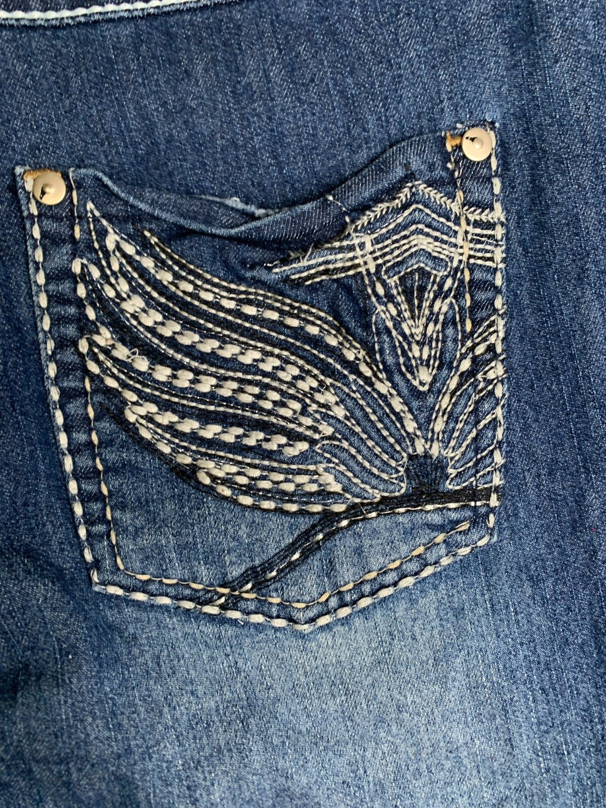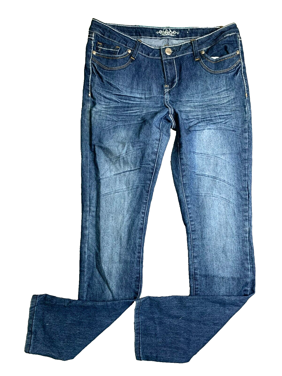 DO Denim Jeans Womens 9x32 (33x30.5) Blue Whiskered Spandex Embroidered Ladies