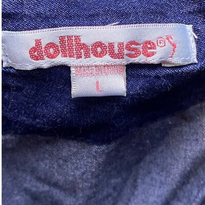 Keywords: Dollhouse, denim dress, ruffle dress, cold shoulder dress, spaghetti strap dress, blue dress, summer dress, casual dress, boho dress, size L, womens dress, party dress, mini dress, fit and flare