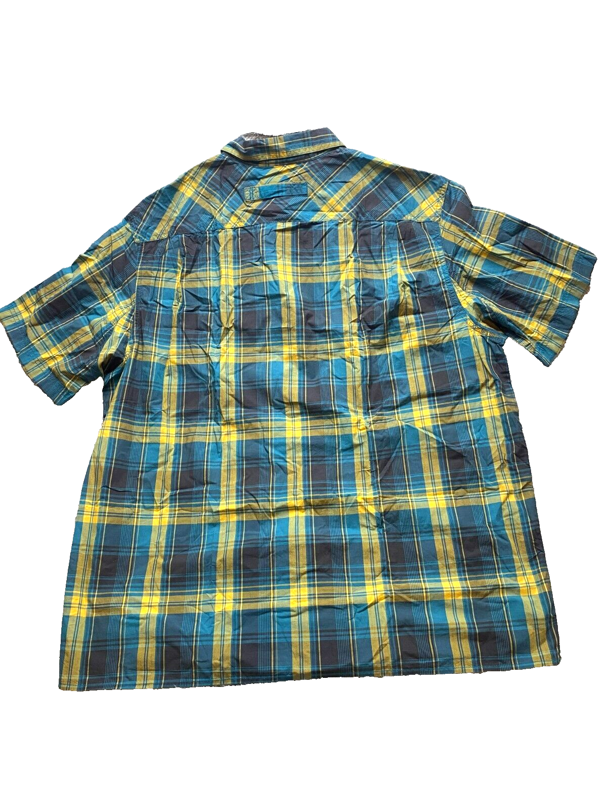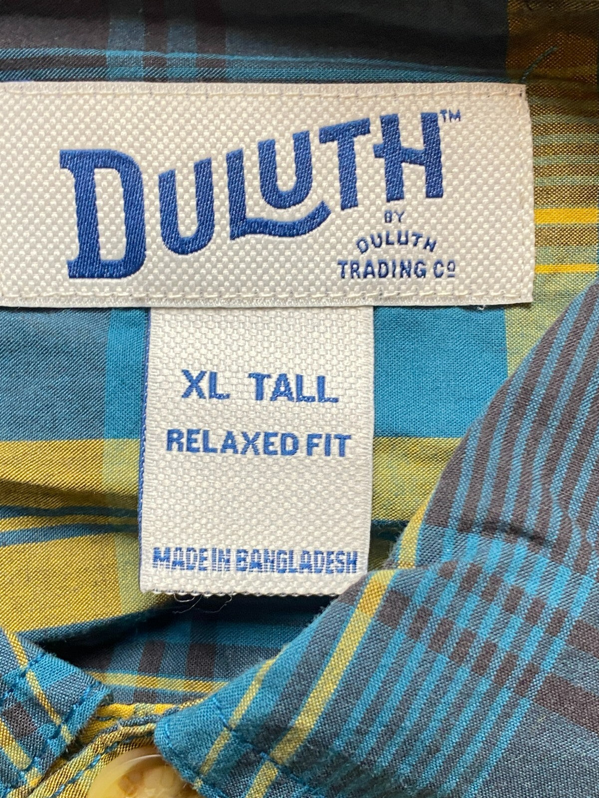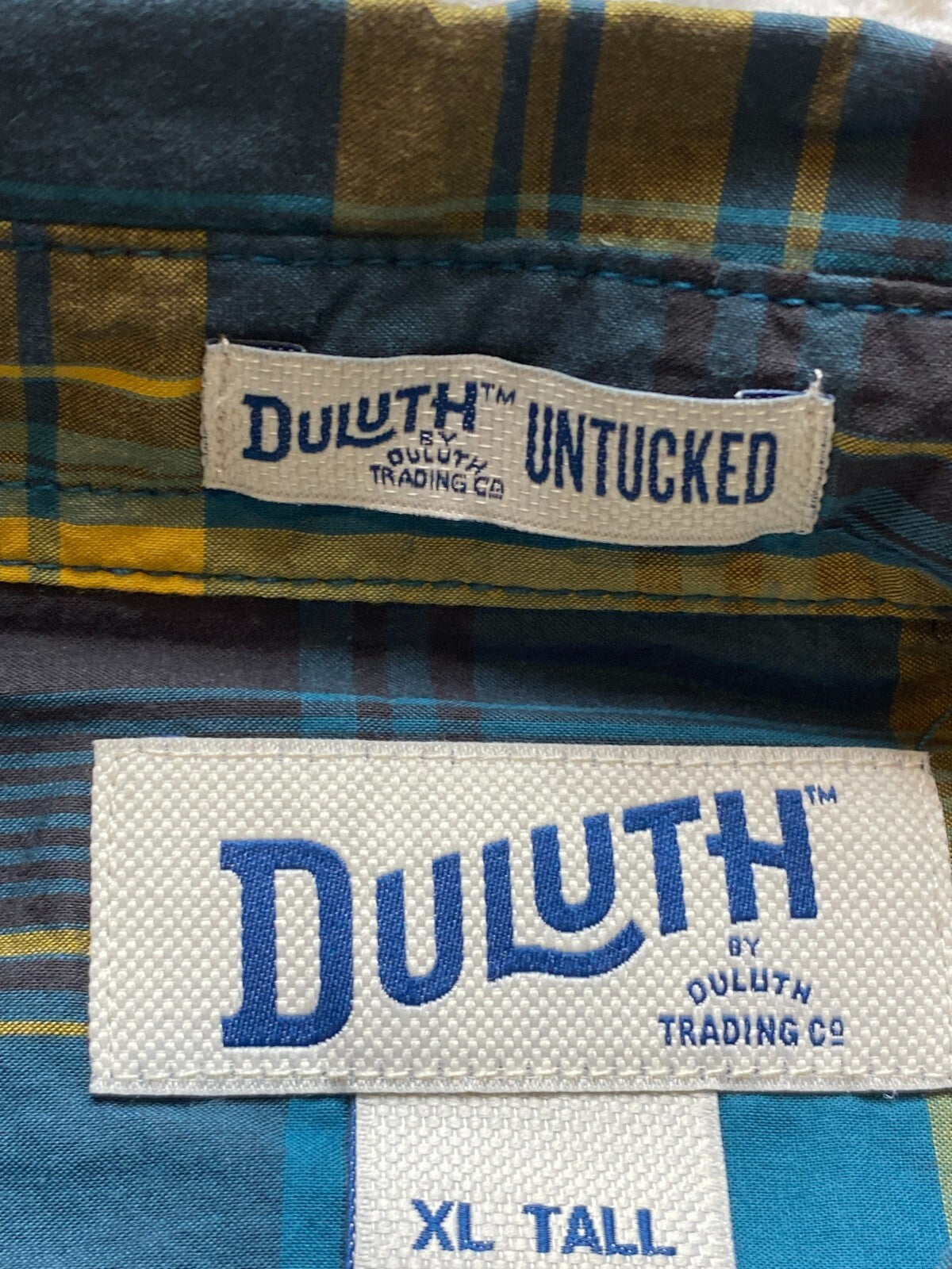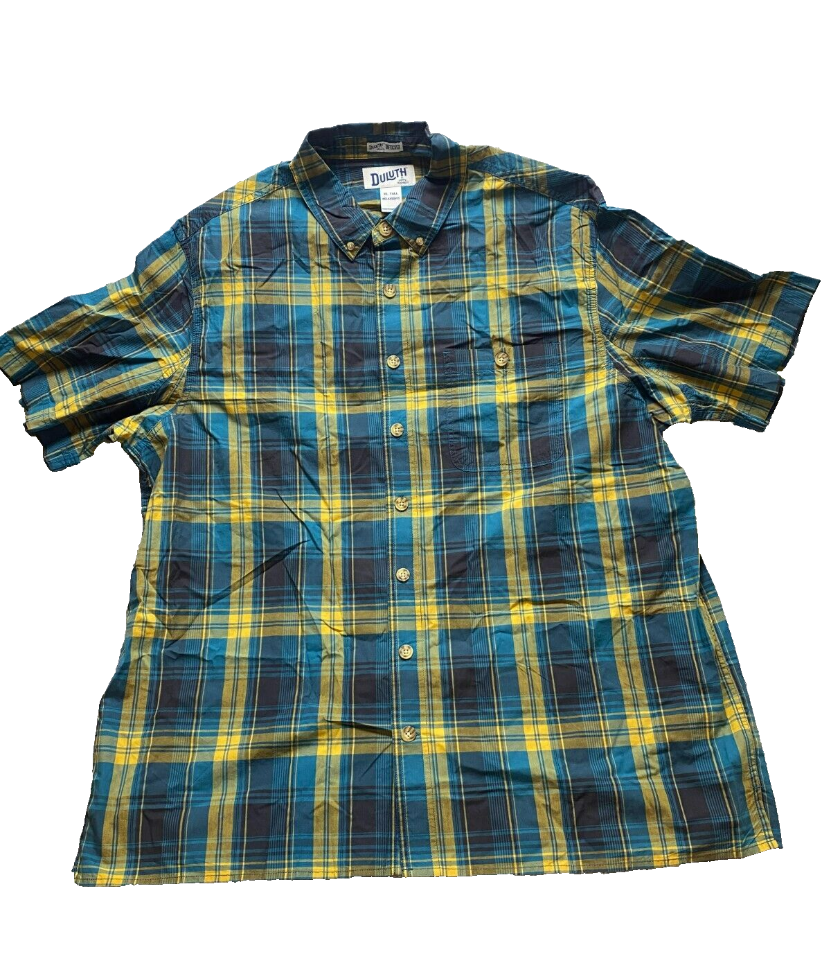 Duluth Shirt Adult Extra Large Tall Teal Yellow Plaid Untucked Relaxed Fit Mens