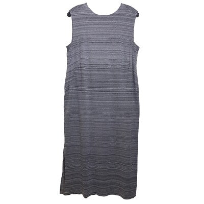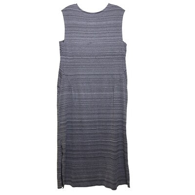 Keywords: Duluth Trading Co., knit dress, gray dress, sleeveless dress, casual dress, midi dress, side slit, comfortable dress, vacation dress, travel dress, heathered dress, women's dress, summer dress, spring dress
