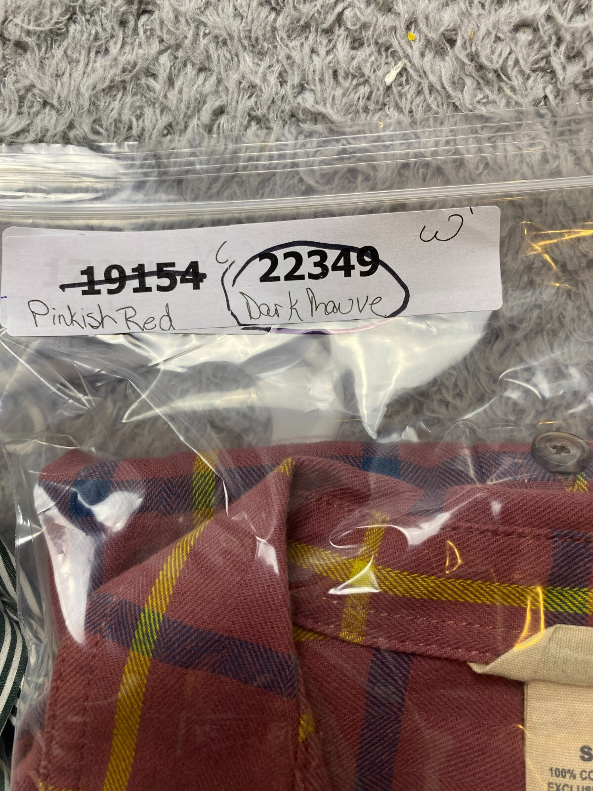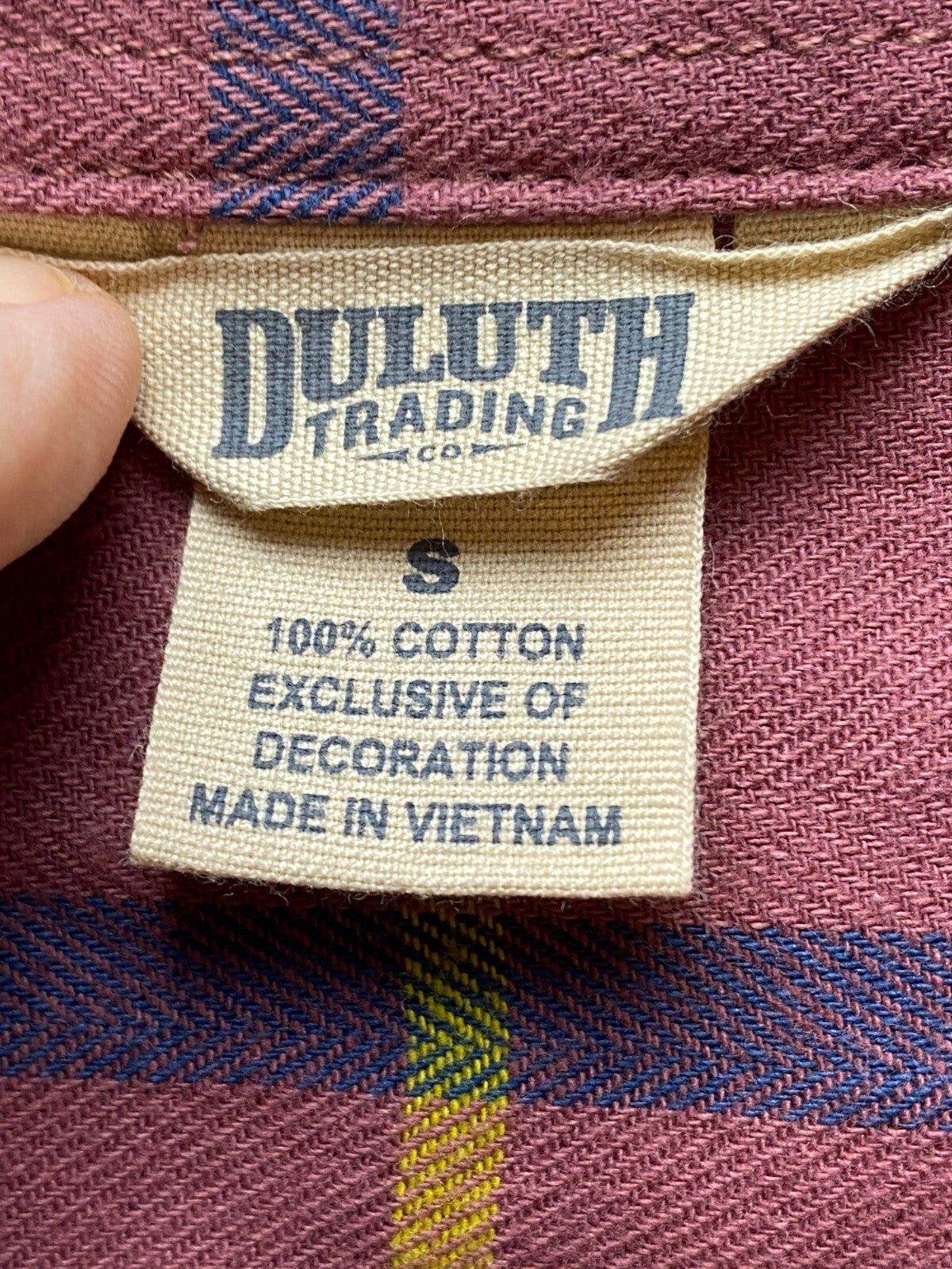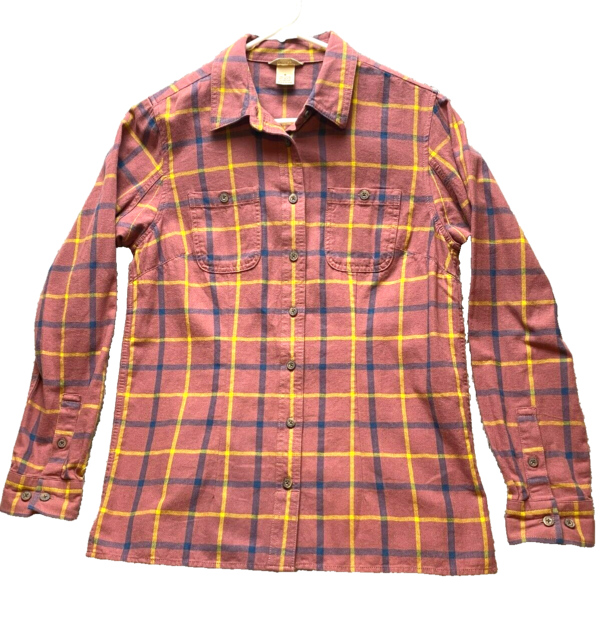 Duluth Trading Co Shirt Womens Small Dark Mauve Plaid Button Up Pockets Casual