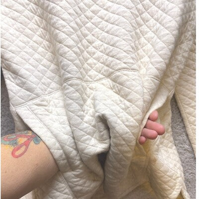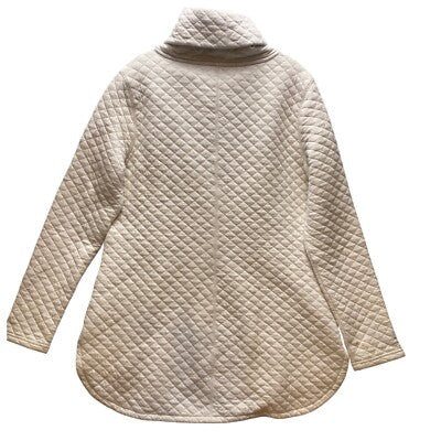 Cozy comfort arrives in this Duluth Trading quilted pullover. The cowl neck design adds a touch of sophistication, while the quilted texture provides warmth and visual interest. A relaxed fit ensures all-day comfort, and the tunic length offers versatile styling options. Note the presence of some stains, as shown in the pictures. Perfect for running errands, lounging at home, or enjoying a casual weekend brunch.