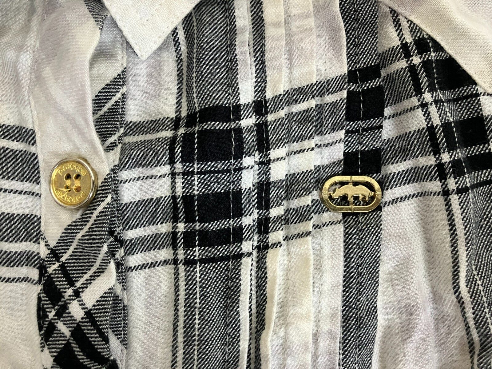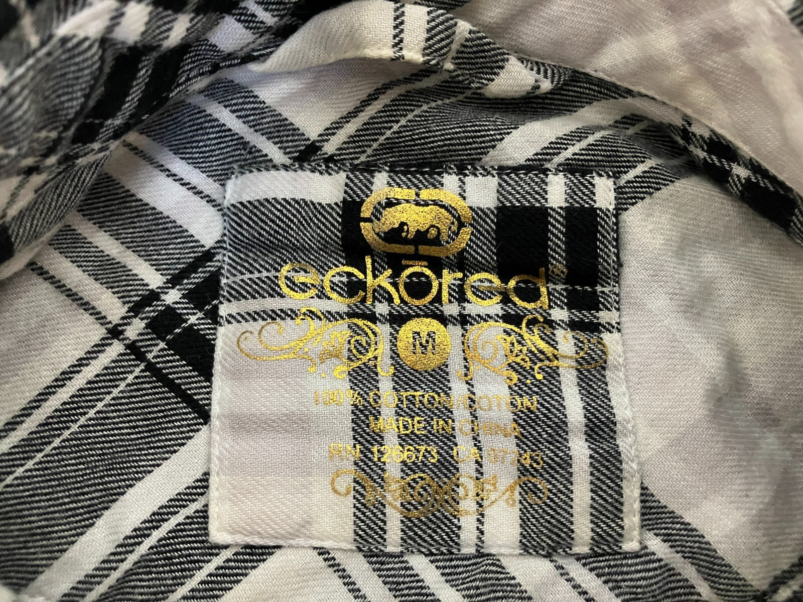 Ecko Red Shirt Women Medium Black White Plaid Button Up Tunic Rhino Brand Blouse