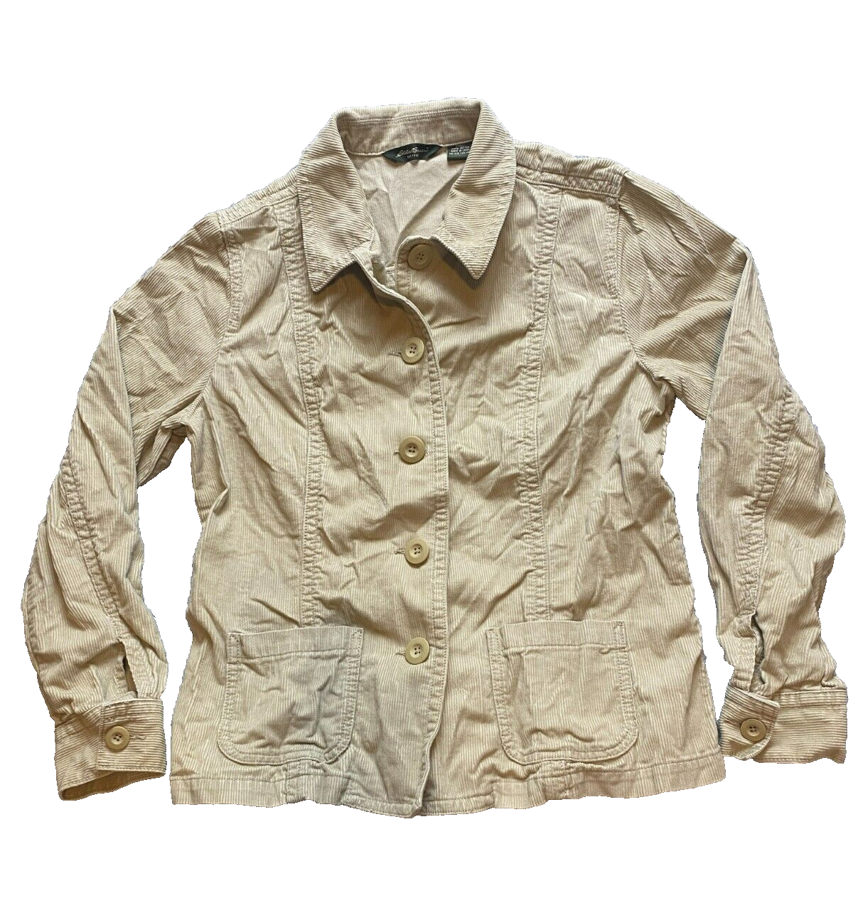 Eddie Bauer Jacket Womens Large Tan Button Up Pockets Corduroy Outdoor Trucker