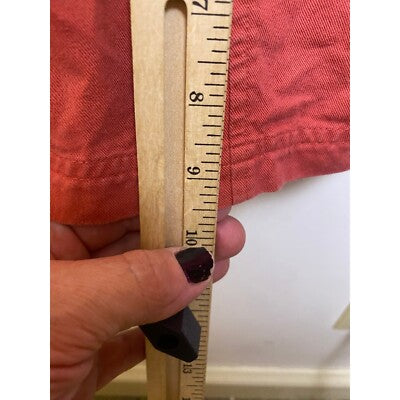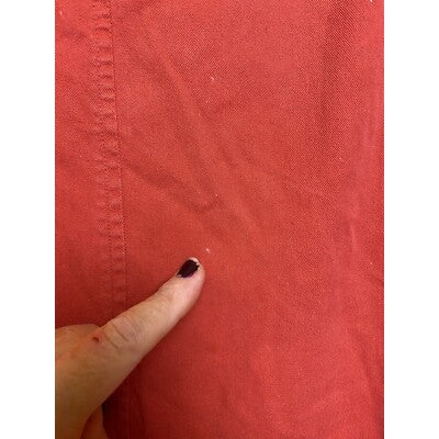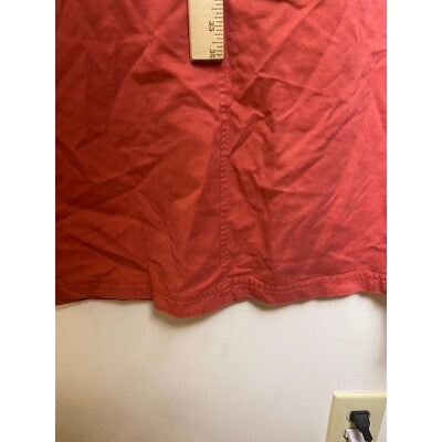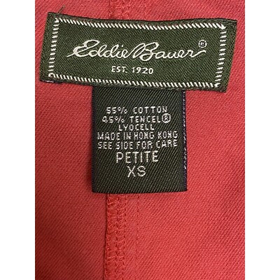 Keywords: Eddie Bauer, jumper dress, sleeveless dress, midi dress, casual dress, pinafore dress, petite size, XS, pockets, button detail, cotton blend, A-line, round neck, red dress