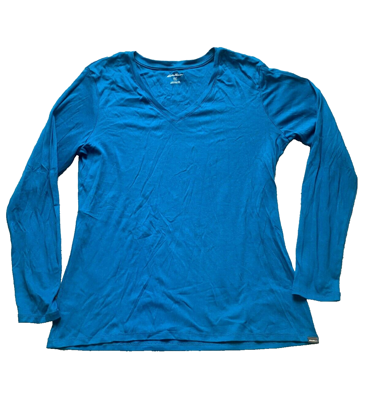 Eddie Bauer Shirt Womens Extra Large Teal Blue V-Neck Oversized Spandex Ladies