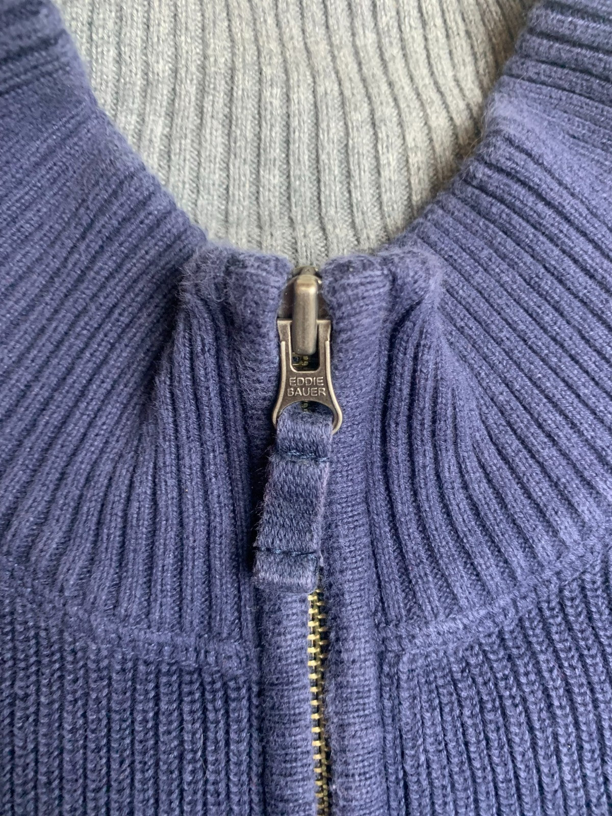 Eddie Bauer Sweater Adult Extra Large Tall Blue 1/4 Zip Mock Outerwear Knit Mens