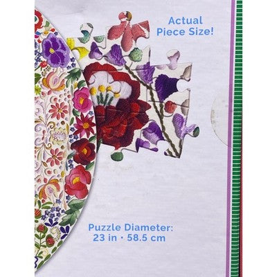 Uncork a world of vibrant artistry with this Eeboo 500-piece round jigsaw puzzle, a captivating potpourri of colorful embroidery brought to life. Vines and flowers intertwine with a charming blue bird and yellow bird, creating a brilliant way to while away a rainy day. This puzzle is more than just a pastime; it's an invitation to immerse yourself in a world of intricate detail and soothing colors. Perfect for a quiet afternoon of mindful relaxation, a family game night filled with laughter, or as a thoughtful gift for the puzzle enthusiast in your life.