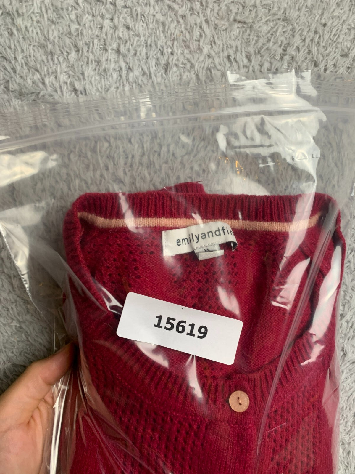 Emily and Fin Sweater Womens Extra Large Red Button Front Cardigan Eyelet Lady