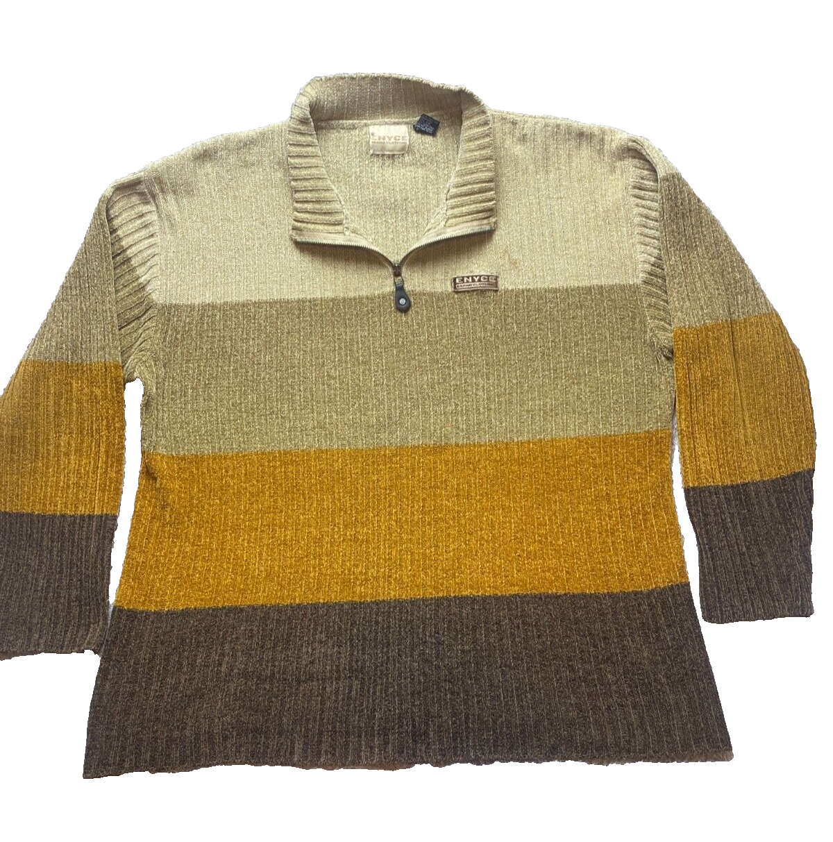 ENYCE Sweater Adult 2XL Colorblock Mock Neck Y2K Knit Pullover 1/4 Zip Mens