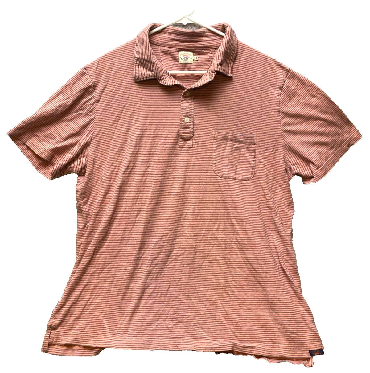 Faherty Shirt Adult Extra Large Salmon Blue Stripes Preppy Casual Golf Polo Mens