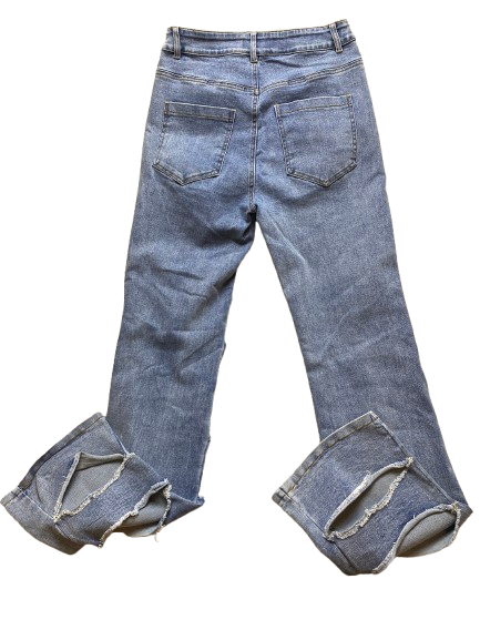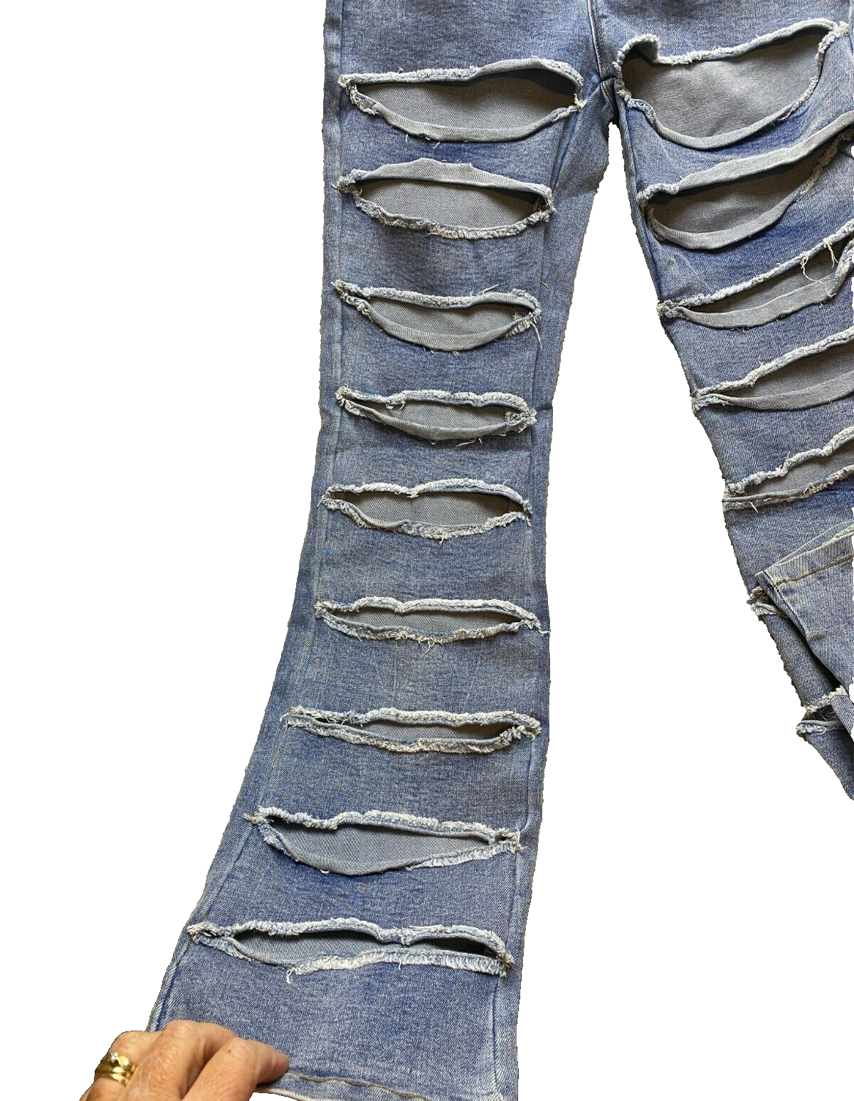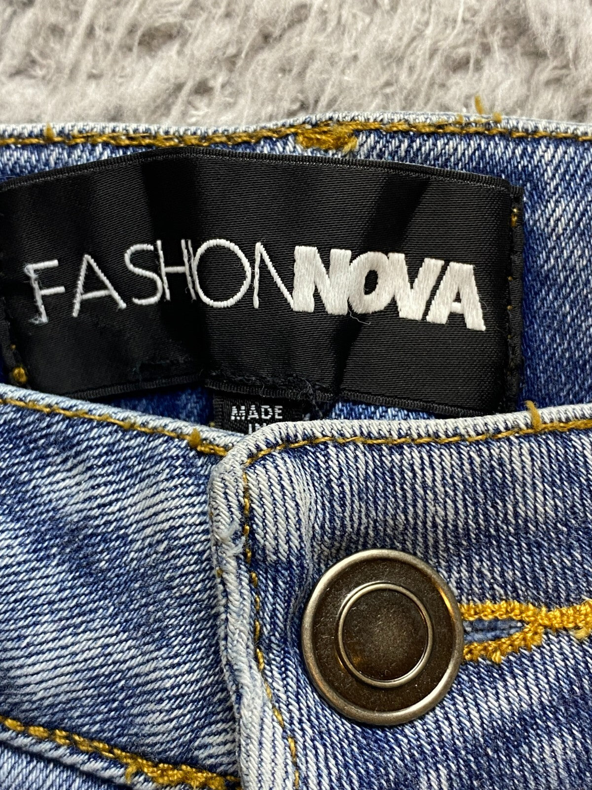 Fashion Nova Jeans Womens 3 (28x30) Blue Destroyed Ripped Flared Spandex Stretch