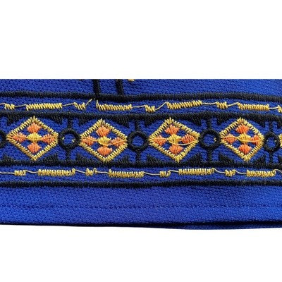Command attention in this vibrant blue dress, a statement piece that blends modern style with intricate detailing. Bold geometric embroidery dances across the bodice, creating a captivating visual effect. The rich colors pop against the vivid blue backdrop, while the flattering A-line silhouette gently skims the body, offering both comfort and effortless sophistication. Perfect for a sunny brunch with friends, a casual evening date, or adding a pop of color to your vacation wardrobe.