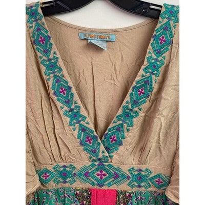 Keywords: maxi dress, bohemian, embroidered, v neck, colorful dress, floral dress, summer dress, casual dress, beach dress, womens dress, flying tomato, rayon dress, patterned dress, vacation dress