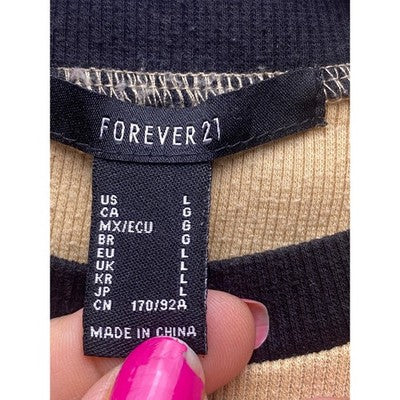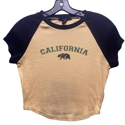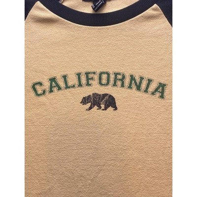 Keywords: Forever 21, California, Bear, Graphic Tee, Crop Top, Raglan Sleeve, Beige, Black, Casual, Women's Top, Large, L, T-Shirt, West Coast, Summer