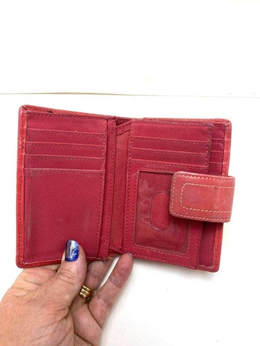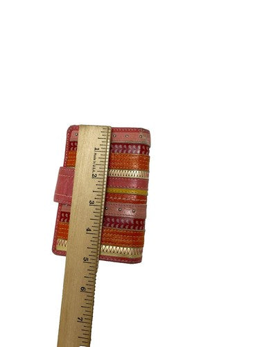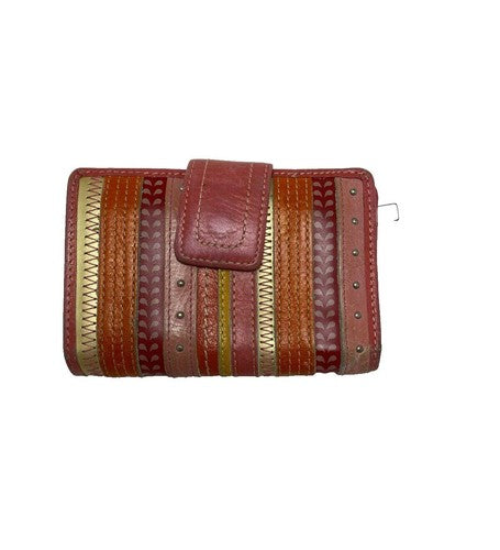 Fossil Wallet Card Holder Coins Pockets Studded Genuine Leather Pink Orange