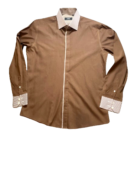 Francesco Smalto Shirt Adult 2XL XXL Brown Flip Cuffs Contrast Casual Dress Mens