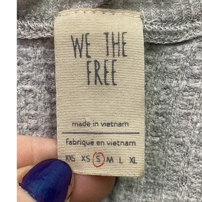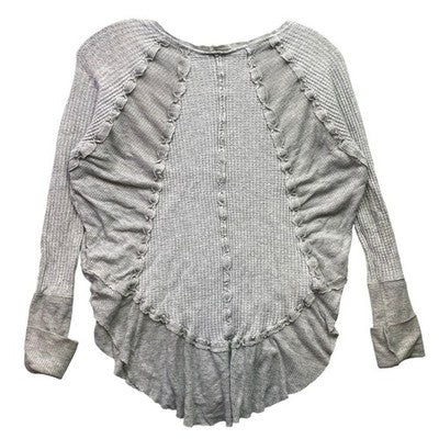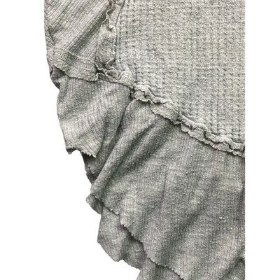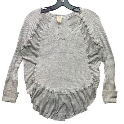 Keywords: We The Free, waffle knit, ruffle hem, long sleeve, v neck, grey top, womens knitwear, casual top, boho, feminine, cozy, textured knit, everyday wear