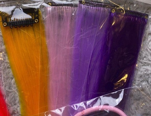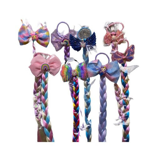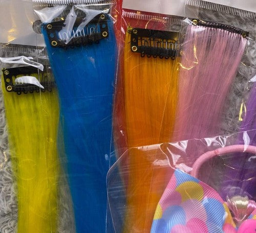 Hair Extensions 16 Pack Clip-in Colorful Braids Bows Ties Party Sleepover NEW