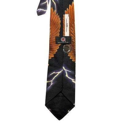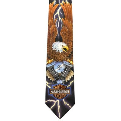 Keywords: Harley Davidson, eagle print, lightning bolt, motorcycle, Ralph Marlin, men's necktie, biker style, statement tie, graphic tie, accessory, bold print, road warrior