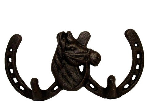 Horse Shoe Coat Rack Wall Mount Cast Iron Western Rodeo Cowboy Decor Farmhouse