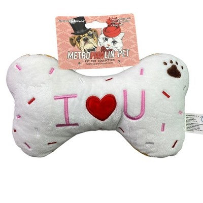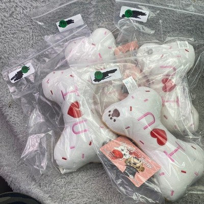 Keywords: dog toy, cat toy, plush, squeaker, bone, valentine, giftable, hypoallergenic, durable, pet accessory, interactive, chew toy, soft, cute
