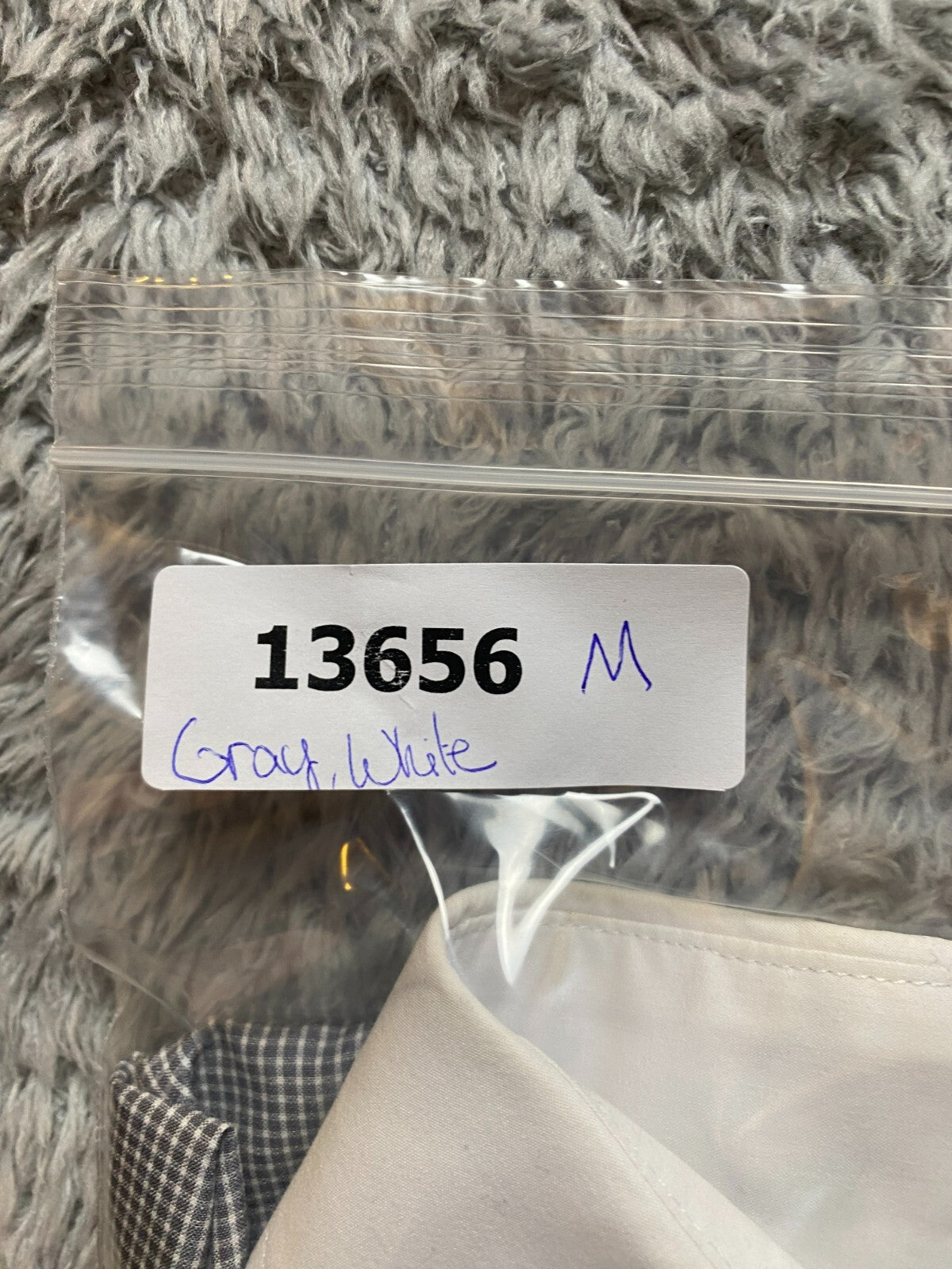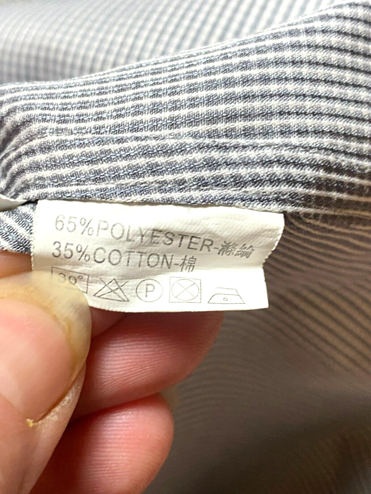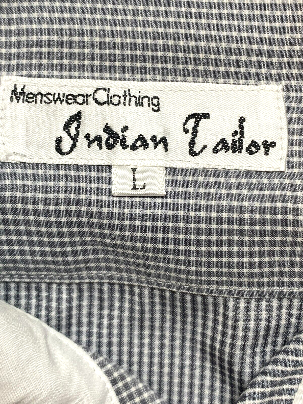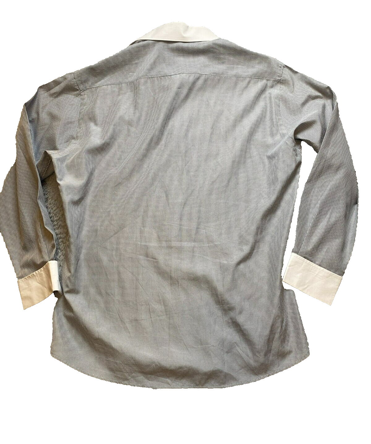Indian Tailor Shirt Adult Large Gray White Button Up Casual Flip Cuffs Mens