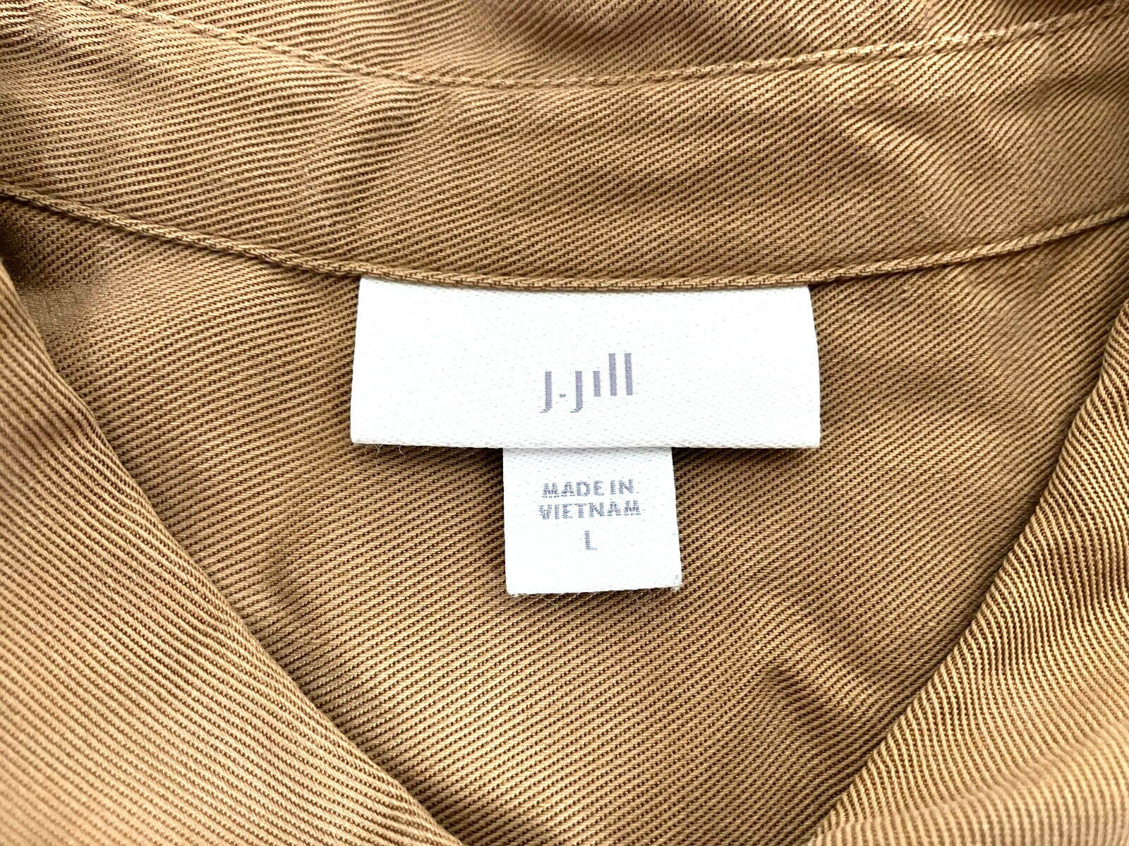 J Jill Dress Womens Large Brown Oversized Button Up Lagenlook Tunic Shirt Ladies