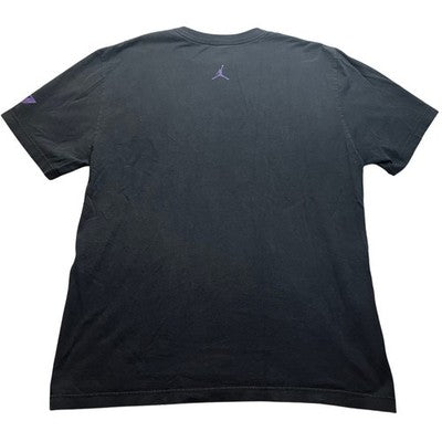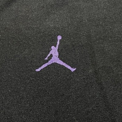 Dominate the court with this striking Jordan graphic t-shirt. Feel the energy of the game with the dynamic depiction of a basketball player in motion, rendered in bold purple and subtle brown accents against a deep black canvas. The iconic Jumpman logo subtly accents the lower hem, a symbol of athletic excellence. This tee is perfect for showcasing your passion for the sport whether you're hitting the gym or out with friends.