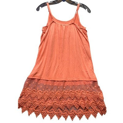 Keywords: orange dress, lace detail, tunic dress, slip dress, summer dress, boho, feminine, casual wear, layering piece, womens fashion, tank style, beachwear