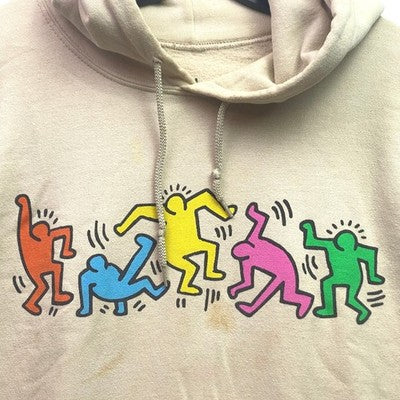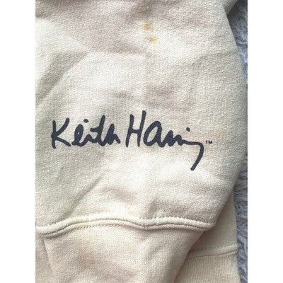 Keith Haring Hoodie Mens Large Beige Pull Over Art Grunge Everyday Streetwear
