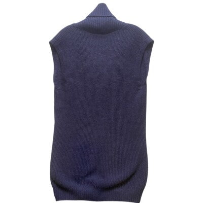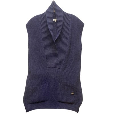 Keywords: Lacoste, wool vest, knit vest, sleeveless sweater, shawl collar, pockets, blue vest, designer vest, women's vest, size 38, woolmark, sweater, layering piece, classic, preppy