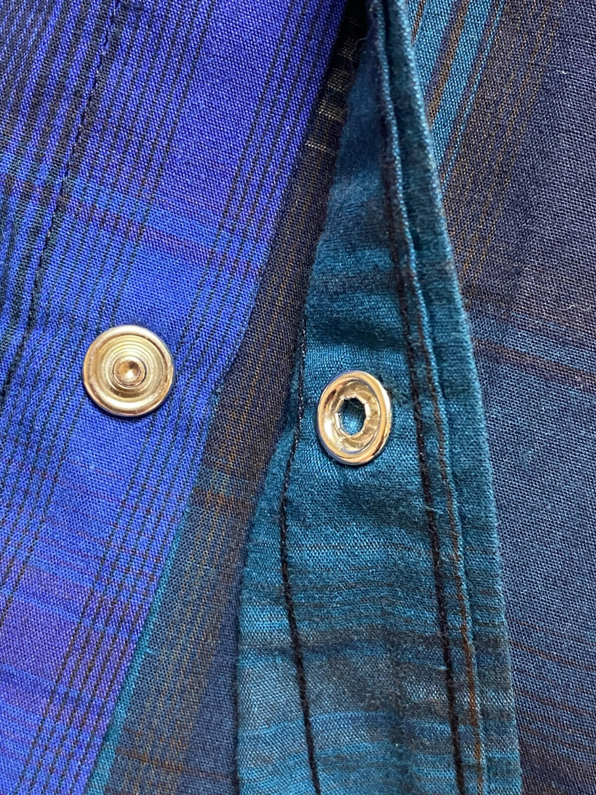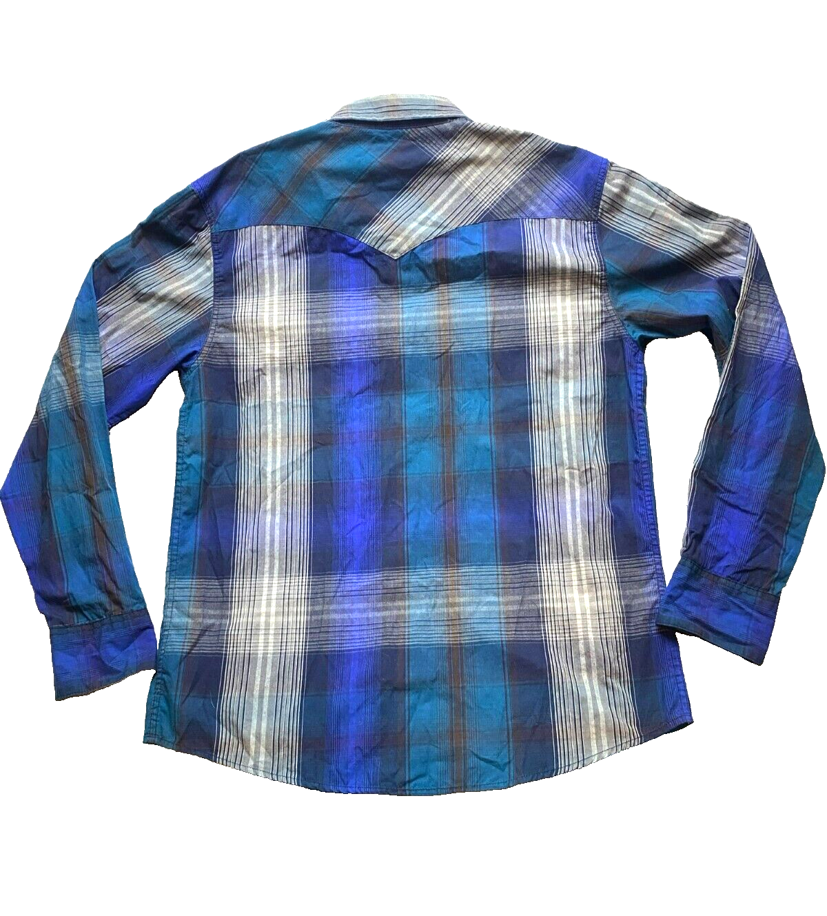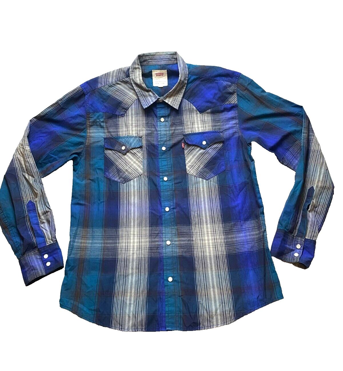 Levi's Shirt Adult Large Blue Gray Plaid Western Pearl Snaps Pockets Cowboy Mens