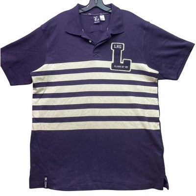 Keywords: LRG, polo shirt, striped, graphic tee, varsity, athletic, casual wear, streetwear, mens fashion, embroidered, short sleeve, laid back, weekend style